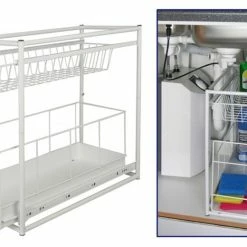 Ideal für die platzsparende Aufbewahrung von Reinigungsutensilien, wie Schwämmen, Putzmitteln, etc. im Spülunterschrank