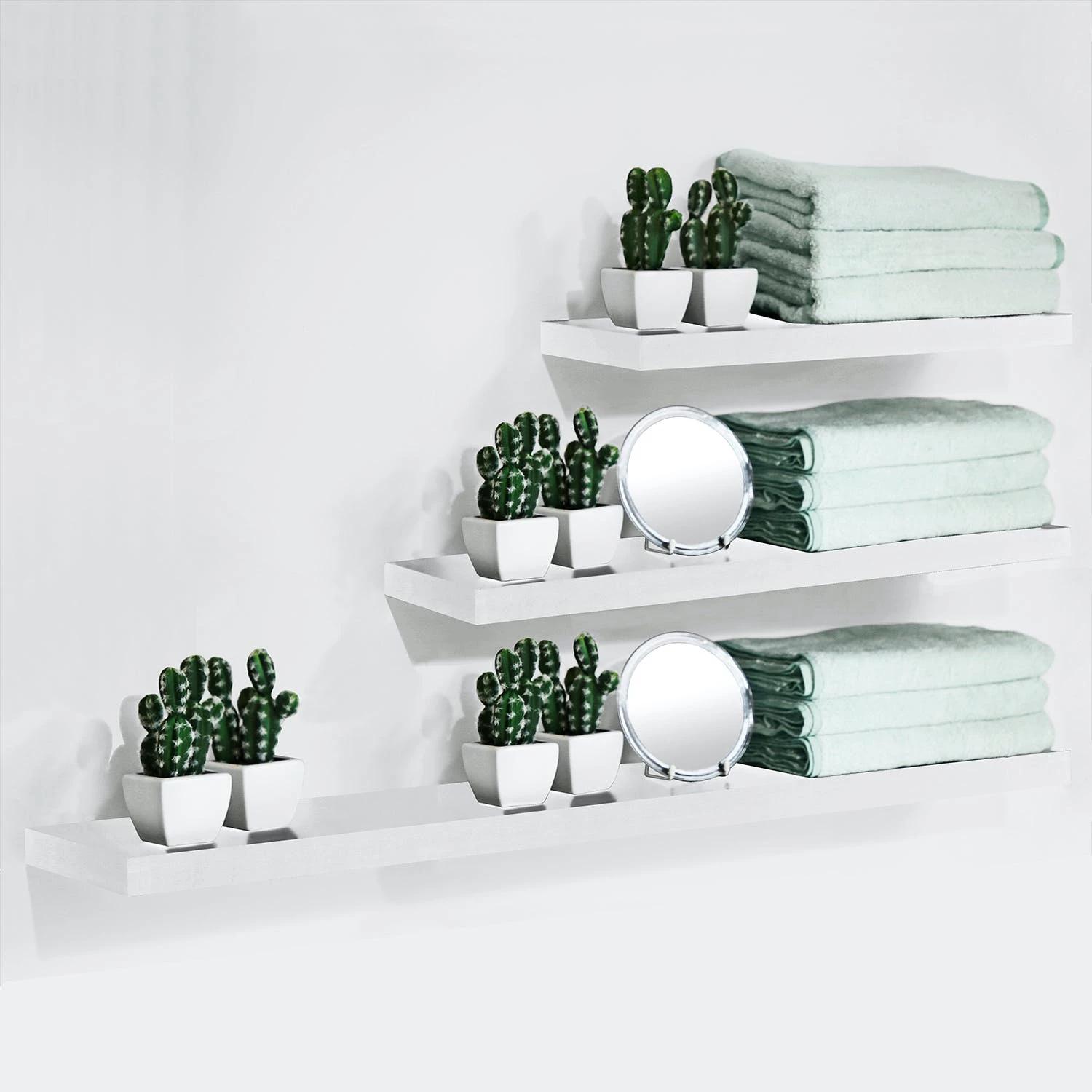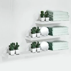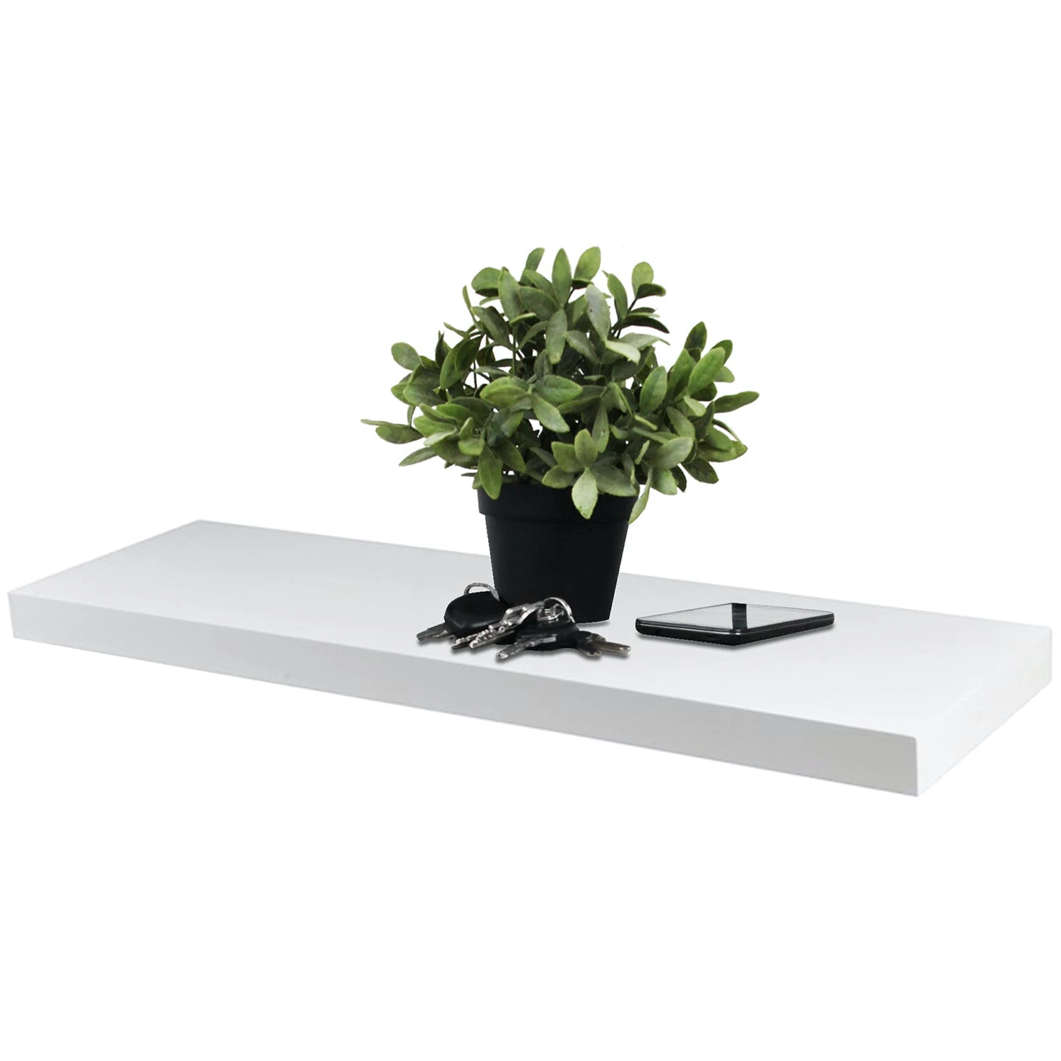 Dieses schwebende Holzregal besteht aus einer pflegeleichten weißen MDF-Platte mit einer Bodenstärke von 3,8cm. Hier finden die kleinen Dinge des Alltags ihren Platz. Der schwebende Effekt kommt durch die nicht sichtbare Halterung zustande. Im Lieferumfang enthalten ist Montagematerial inkl. Dübel zur Befestigung der Halterung an der Wand und zur Fixierung der Platte an der Halterung.